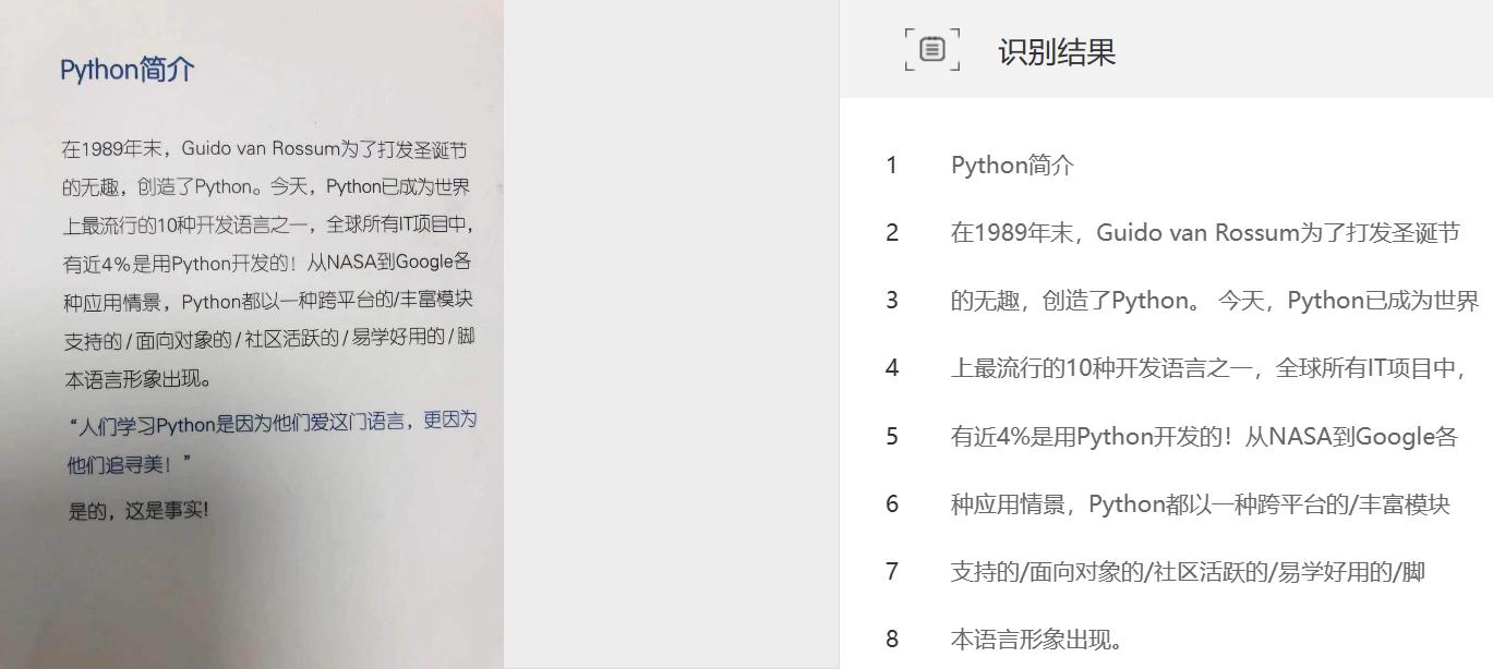 3、支持普通文本文档内容识别、自然场景拍照文字识别;