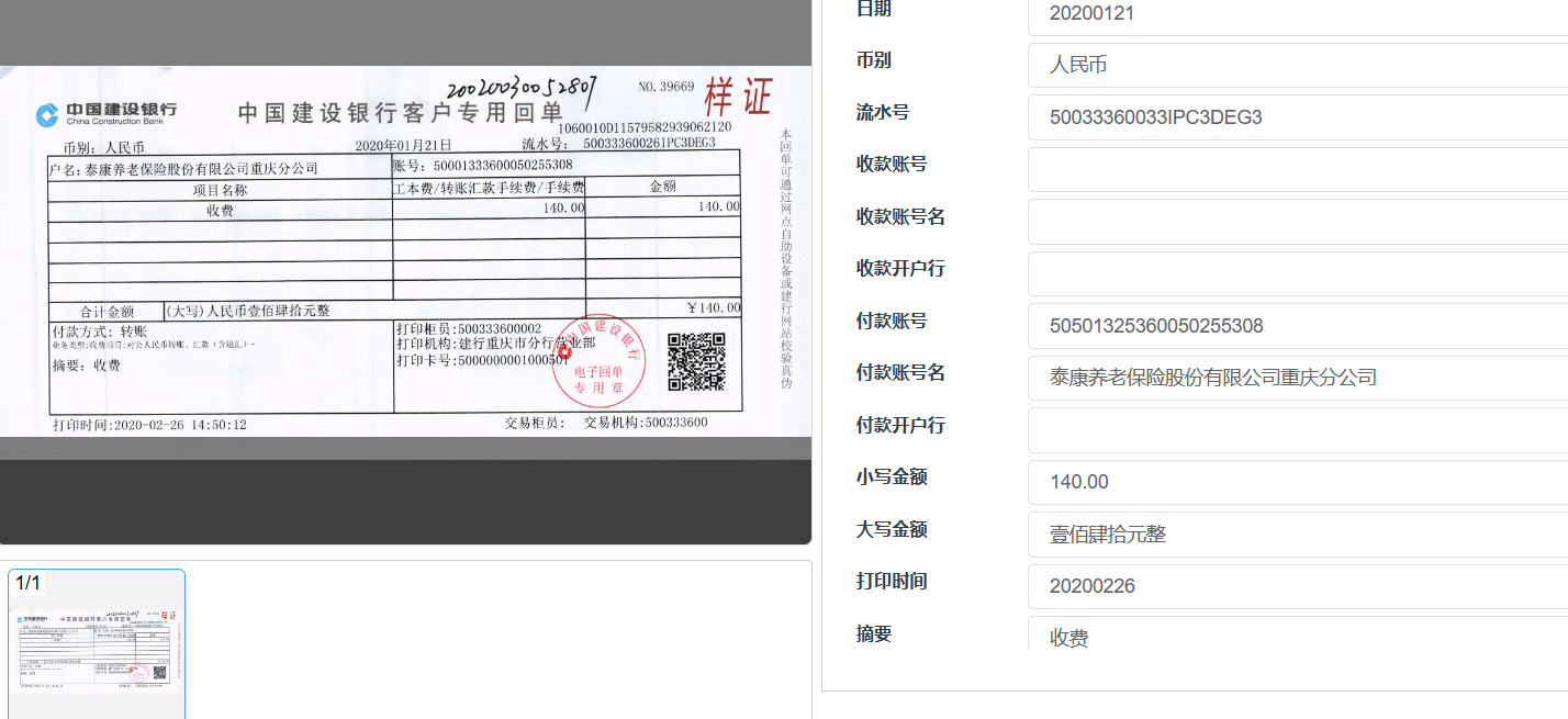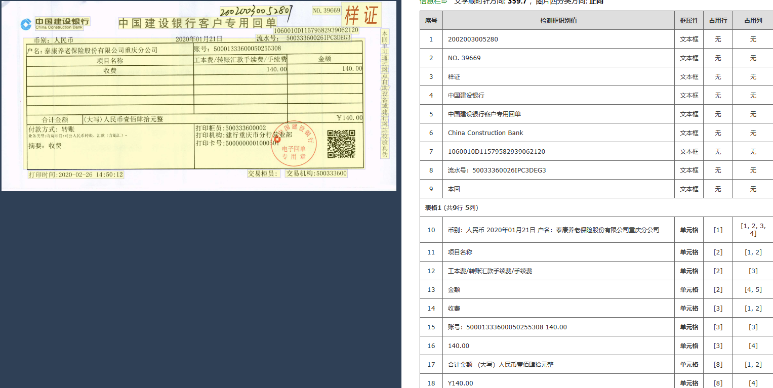 2、楚识银行回单OCR可识别国内各大银行的电子回单以及纸质回单;