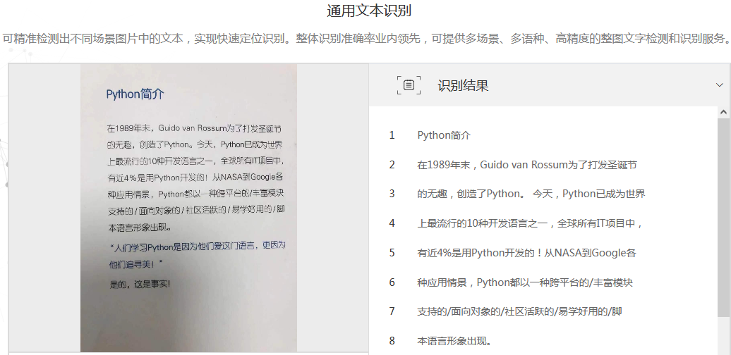 1、识别语种丰富:支持识别印刷简繁体、英文、阿拉伯文等语种;