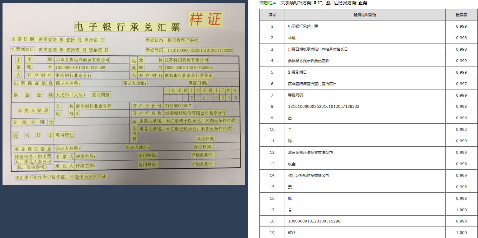 5、承兑汇票OCR在实际应用中,自适应性强,真实识别率高达95%以上;